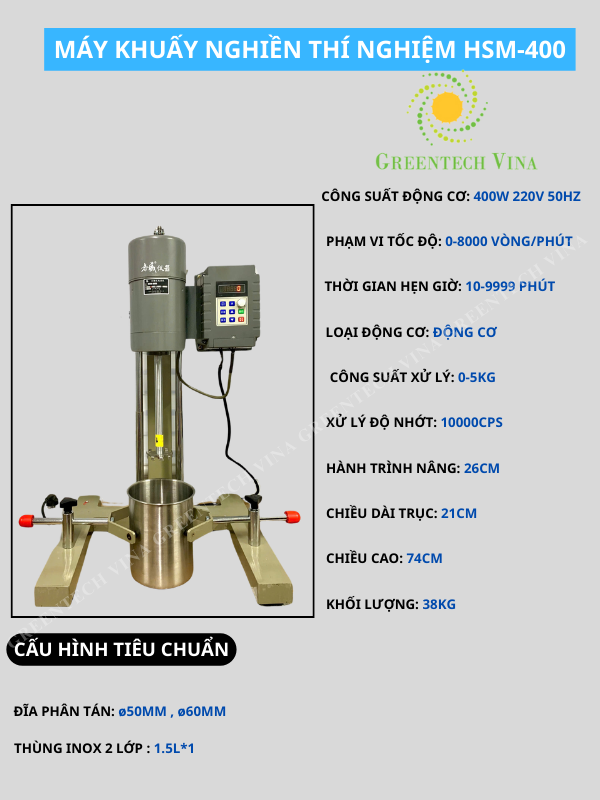 Máy khuấy nghiền thí nghiệm HSM thiết kế nhỏ gọn có thể để bàn, sử dụng để khuấy trộn hỗn hợp lấy mẫu thử, phục vụ cho mục đích nghiên cứu và sản xuất mẫu. Máy hoạt động dựa trên nguyên lý quay của cánh khuấy với tốc độ quay có thể điều chỉnh dựa theo nhu cầu, là thiết bị không thể thiếu trong phòng thí nghiệm