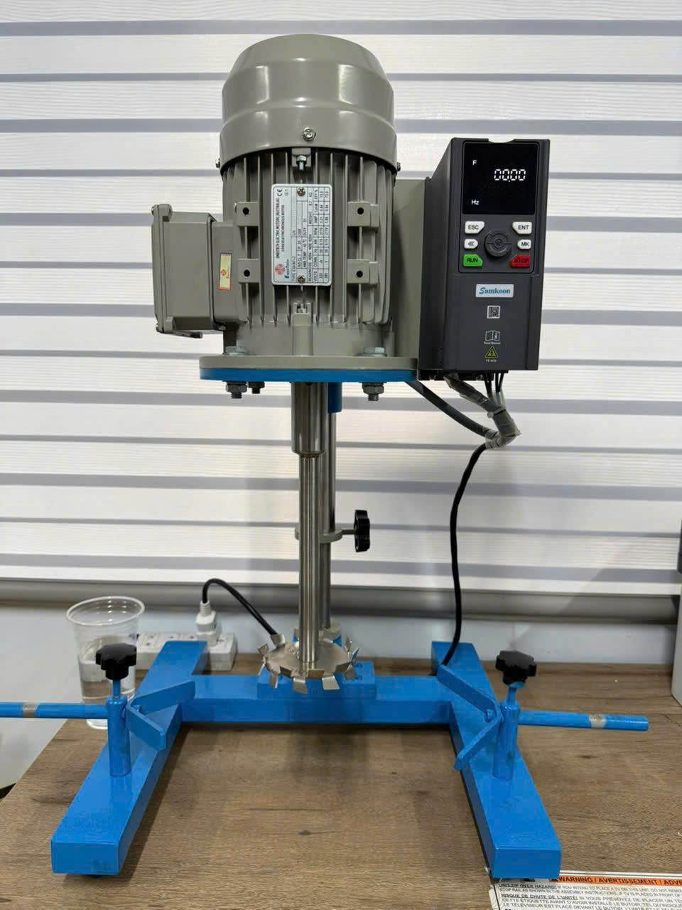 Máy khuấy phòng thí nghiệm hoạt động dựa trên nguyên lý cơ học, sử dụng motor để quay trục khuấy.